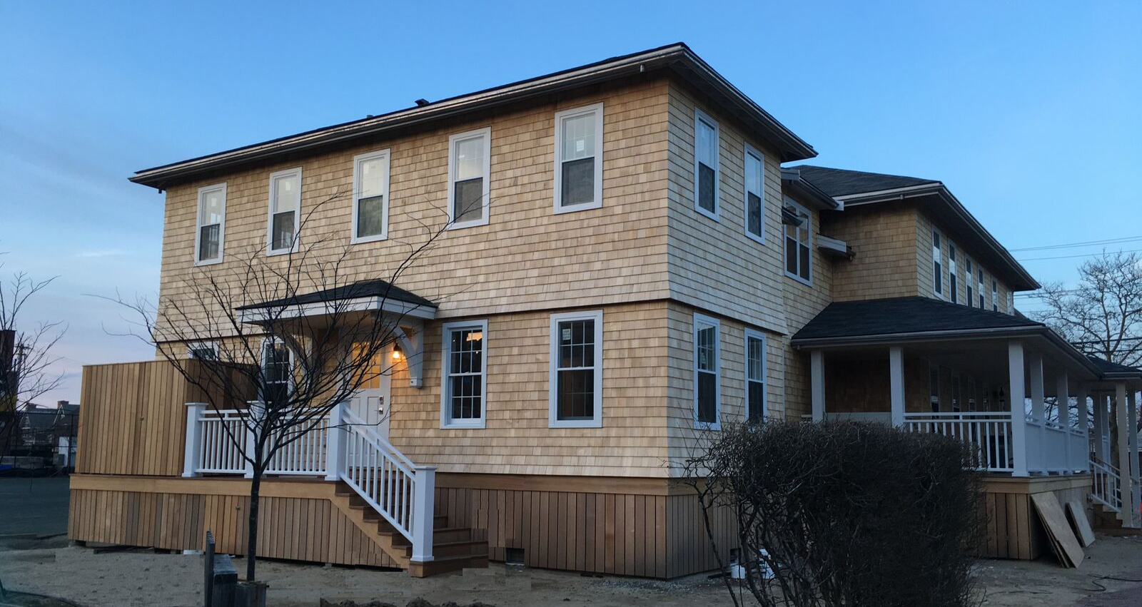 Designing a large commercial building in a historic district is not an easy task and poses many challenges. The Nantucket Yacht Club (NYC) and Emeritus Development were able to successfully complete large-scale, new construction that fits into the historic surroundings. The Yacht Club Dormitory at 4 South Beach Street is a 6,000-square foot building and contains sixteen dormitory units. Emeritus addressed the challenge by breaking up the massing, employing a low roof, and adding ornamentation like a shingle flare, to evoke the architecture of the early twentieth century. The structure also took its design cues and scale from the adjoining NYC. In addition to sensitively fitting into the streetscape, this building addresses the island’s critical housing need and will provide employee housing that will contribute to the vitality of the downtown year-round.